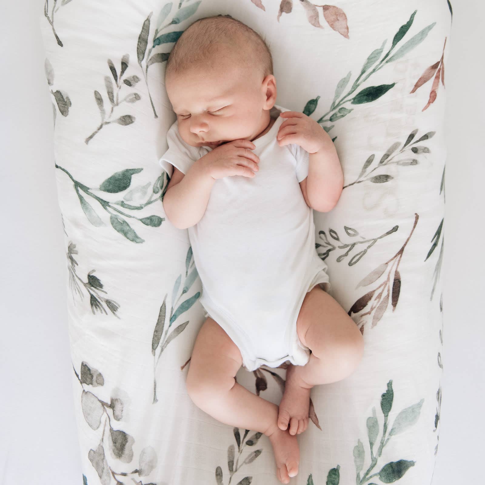 A super soft bamboo baby swaddle blanket with a beautiful botanical print. A changing bag essential, and also a perfect newborn gift.