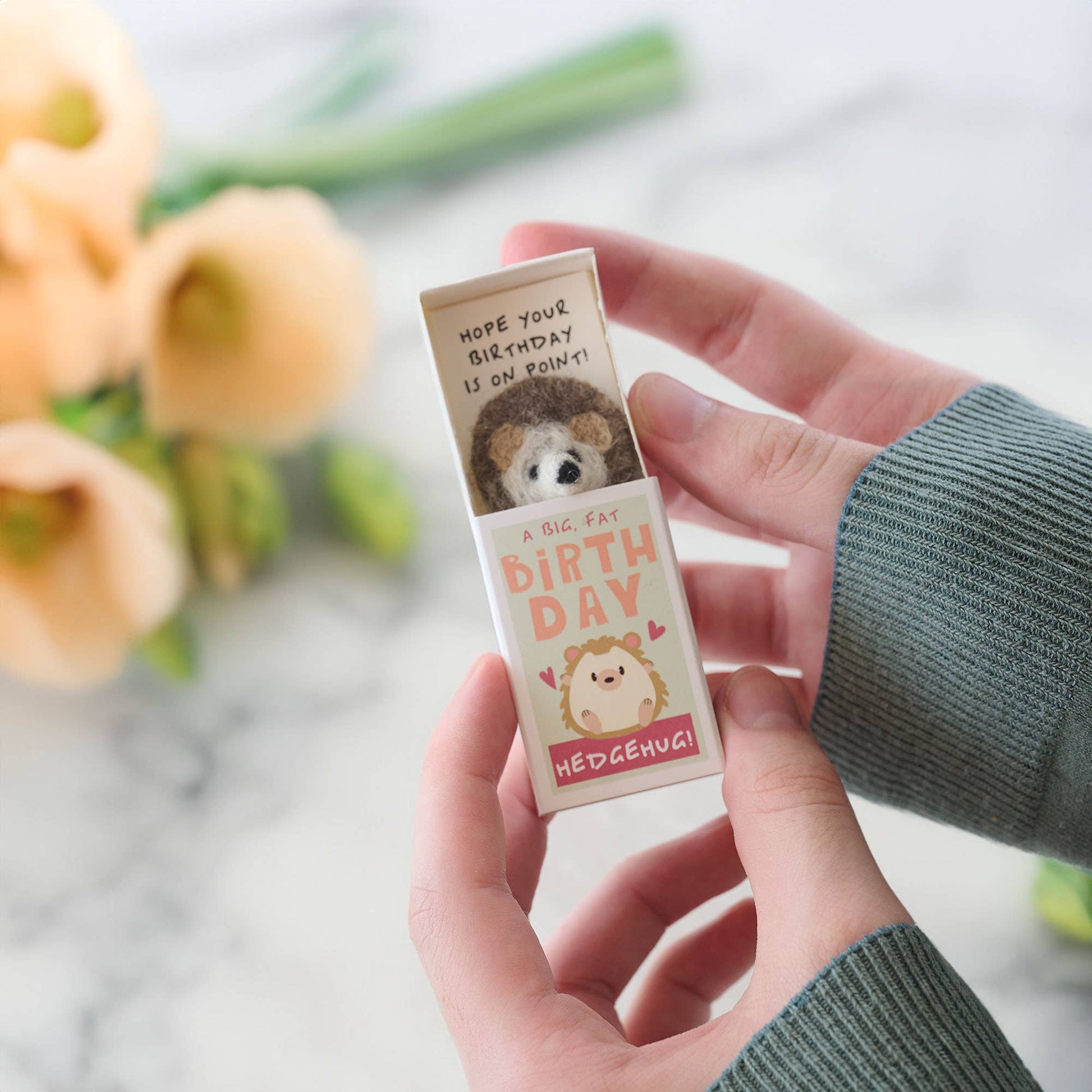 Make their day brighter with our adorable "Sending You A Birthday HedgeHug", a handmade wool felt hedgehog snugly housed in a charming matchbox. This delightful birthday surprise is guaranteed to warm hearts and bring smiles to faces.