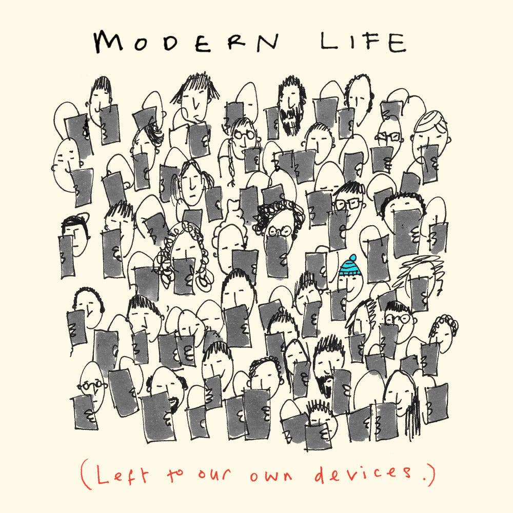 Modern Life,Devices' Greetings Card by Poet and Painter. Blank Inside 150mm x 150mm Printed on high quality, matt FSC rated card, selected for its beautiful print capacity. Supplied with FSC white envelope secured inside the card with a branded Eco-Clasp.