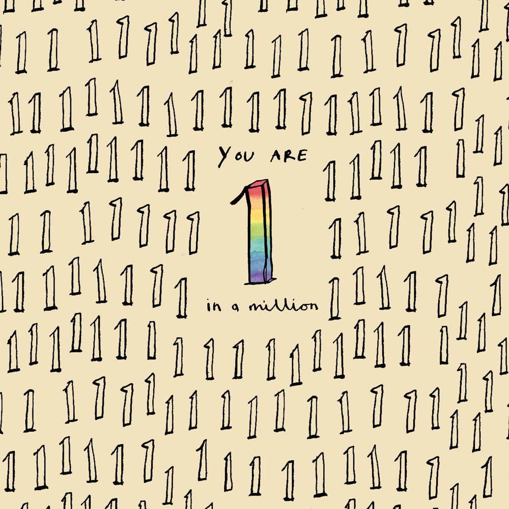 'One in a Million' Greetings Card, FP3229 by Poet and Painter. Blank Inside 150mm x 150mm Printed on high quality, matt FSC rated card, selected for its beautiful print capacity. Supplied with FSC white envelope secured inside the card with a branded Eco-Clasp.