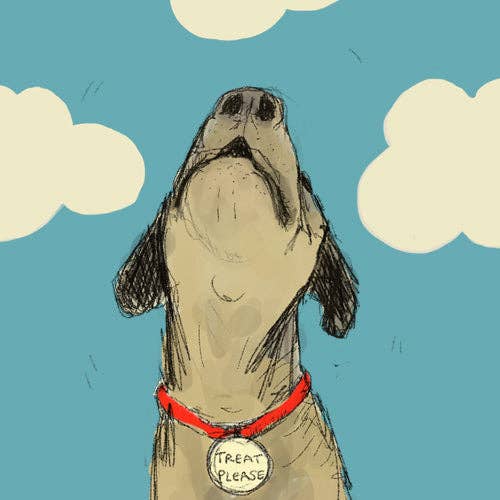 'Treat Please! ' Greetings Card by Poet and Painter. Blank Inside 150mm x 150mm Printed on high quality, matt FSC rated card, selected for its beautiful print capacity. Supplied with FSC white envelope secured inside the card with a branded Eco-Clasp.