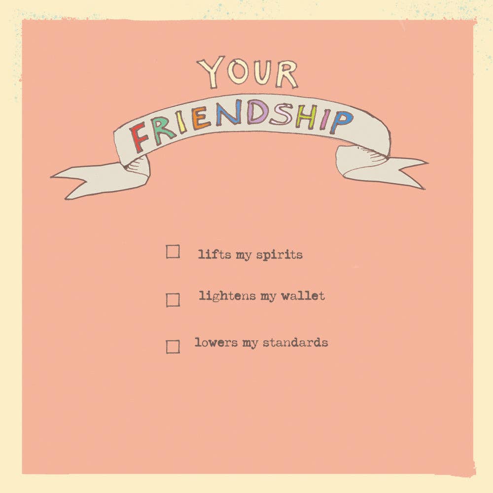 Your Friendship' Greetings Card by Poet and Painter. Blank Inside 150mm x 150mm Printed on high quality, matt FSC rated card, selected for its beautiful print capacity. Supplied with FSC white envelope secured inside the card with a branded Eco-Clasp.