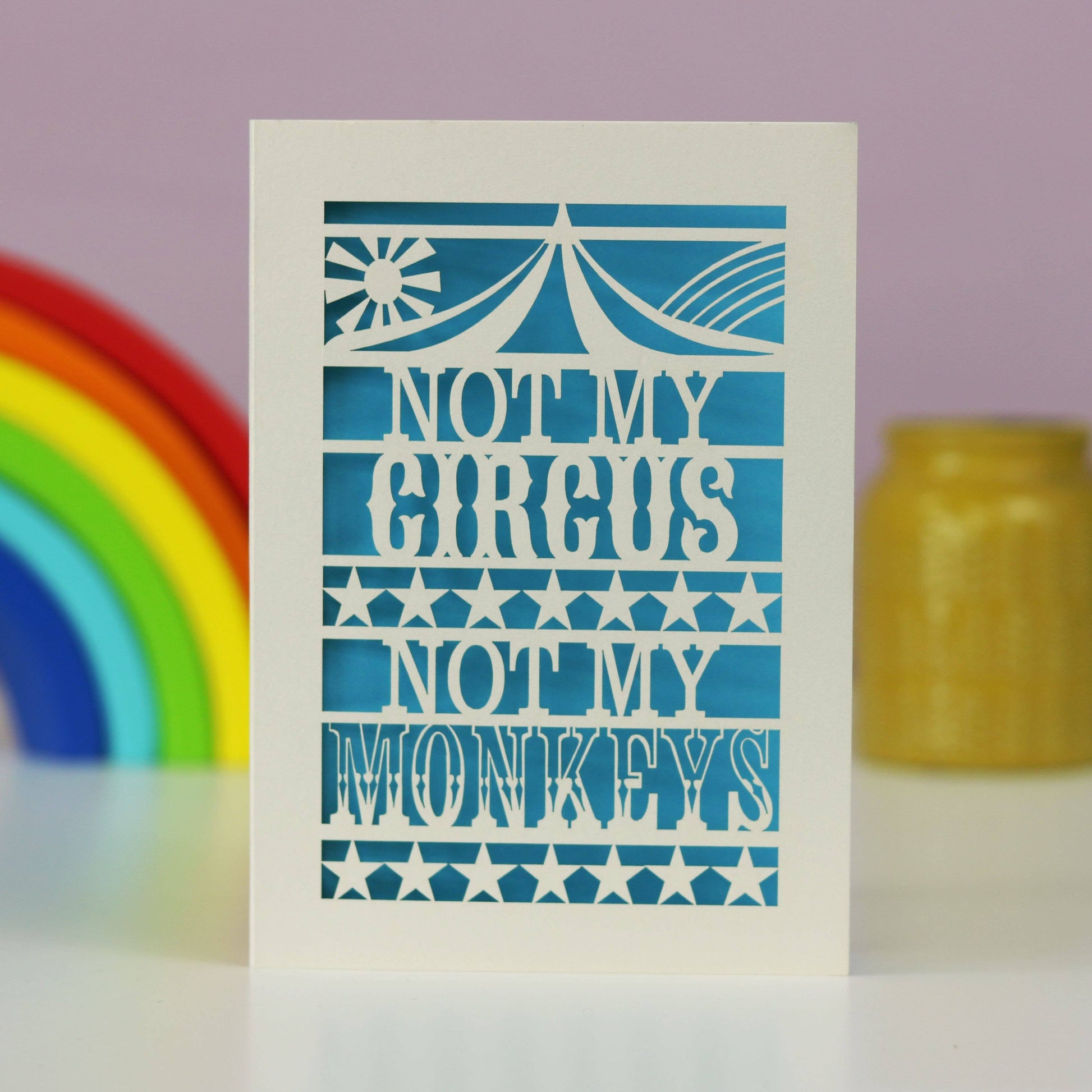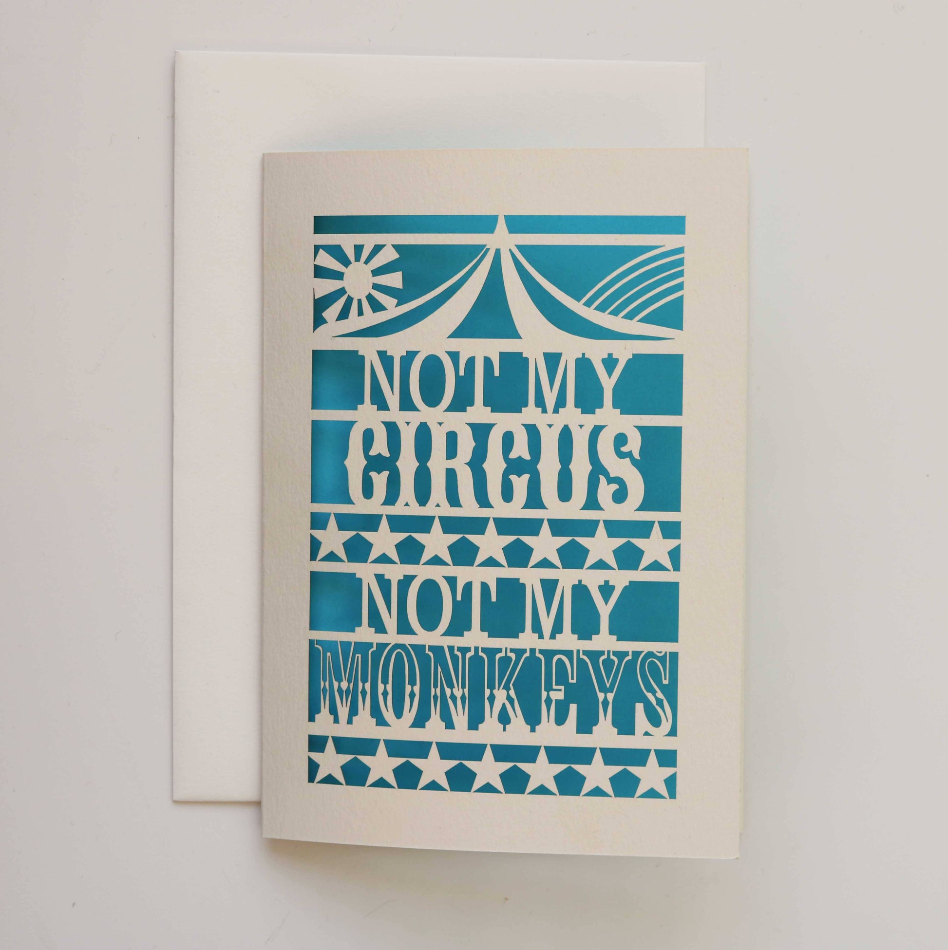 Laser cut from cream card and hand finished with a peacock blue paper insert. Cards are blank inside and come sealed in a biodegradable cello bag with a white peel and seal envelope.