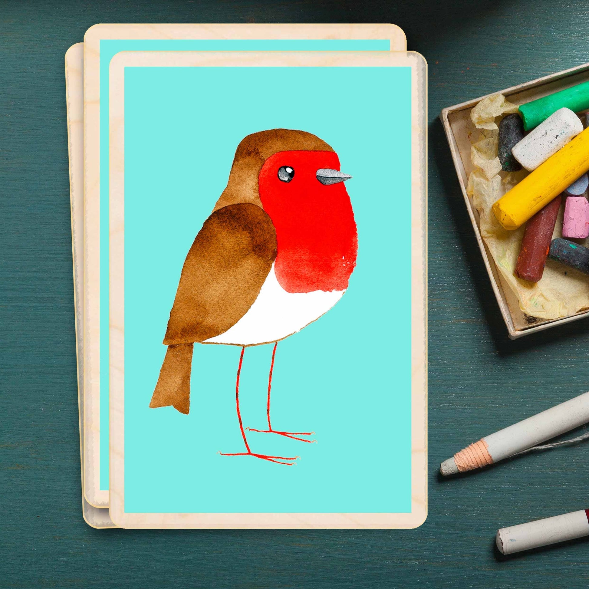 THE WOODEN POSTCARD COMPANY - ROBIN sustainable wood card, wood magnet